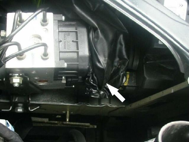 Allways wanted to know what that aluminum box is with those steel lines comming out the top? Well that’s your anti-blocking system unit, and you’re about to disconnect it. First, you need to remove the cover which protects the plug from moisture. You better change your headlights while it is not raining, because chances are that your ABS will stop working if you get the connector to corrode.
