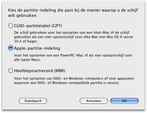 - You’ll see that “MBR” is the default, which is what’s causing the problem. Select the middle option “Apple Partition” and you’re good to go.