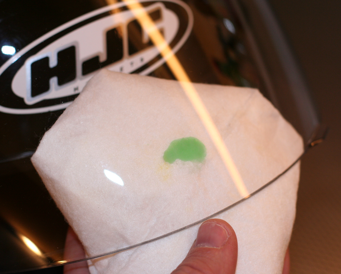 You can test if your visor is clean by breathing on it. If it fogs up nice and evenly, it’s clean enough for the next step.