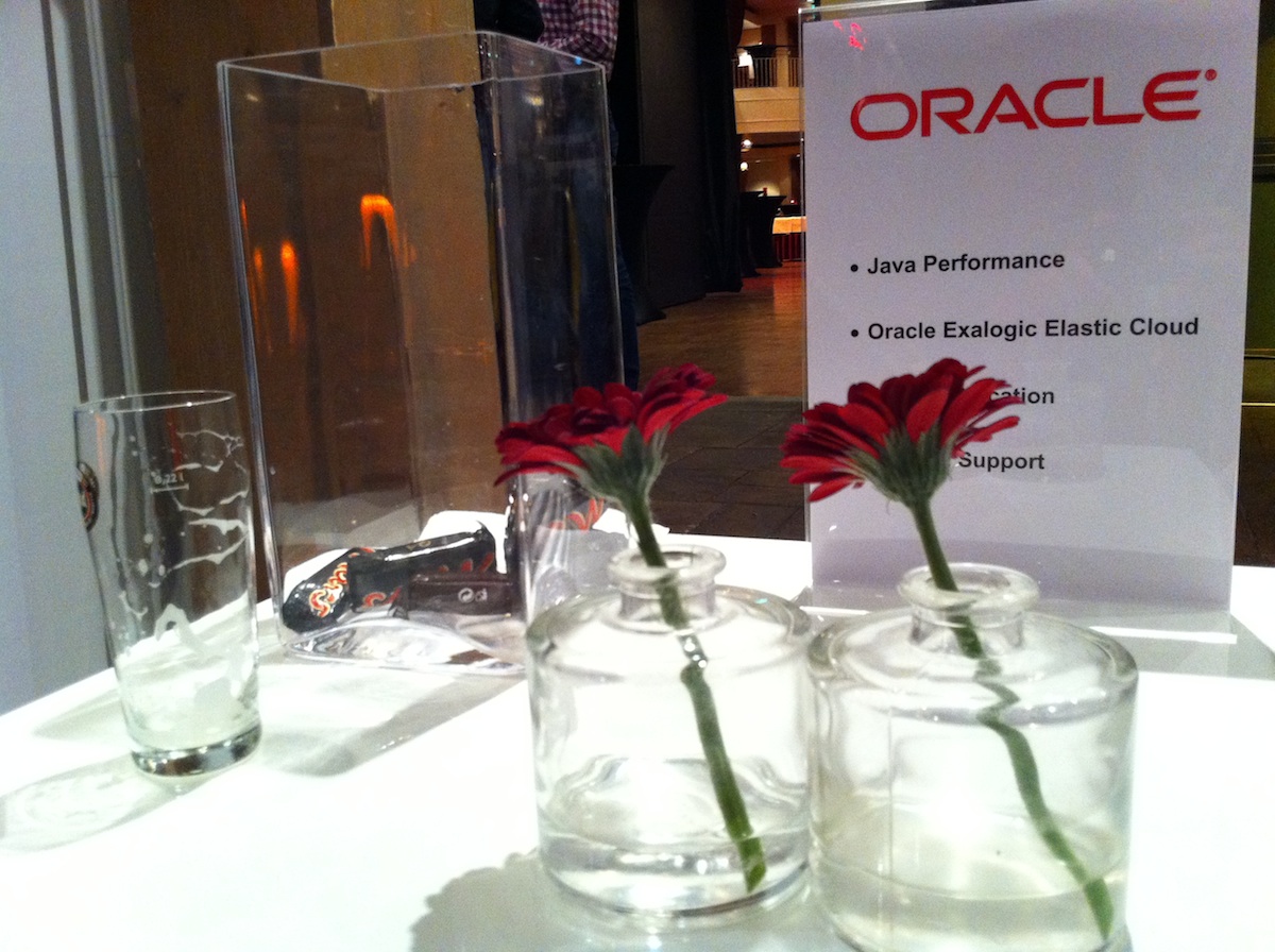 A colleague advised be to go see Lucas Jellema. Lucas was the first speaker of the day who actually seemed to know what he was doing on stage. Although his slides were a bit crowded, he had a good story with many demos. It was a welcome change after Tomas and Arun, although Lucas didn’t have any real new stuff. Polling, long-polls, asynchronus AJAX calls and the old request/response problem in http, and database triggers firing Java programs. Except for Web Sockets there was nothing new but nice to be reminded how these things actually work.