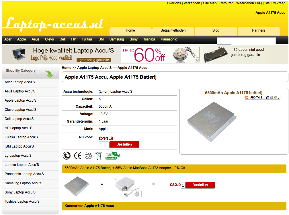 The first step of every professional online webshop is ofcourse the webshop itself. It should give the customer a good feeling about your customer, and what better than to make the website in the customer’s local language? Or, if you really want to go all the way, you can register different local domains, like Lawrence did when he registered “laptop-accus.nl”, and probably a bunch of other domains.