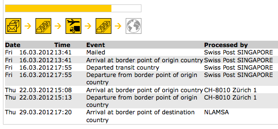 So you made a local website. But to be able to make some profit, you found a cheap manufacturer in Singapore. So to get products from your manufacturer to the customer, preferably without stocking up, you select the absolute best parcel service you can find. For instance, you can select Swiss post to deliver your parcels, door to door, at an incredible speed: