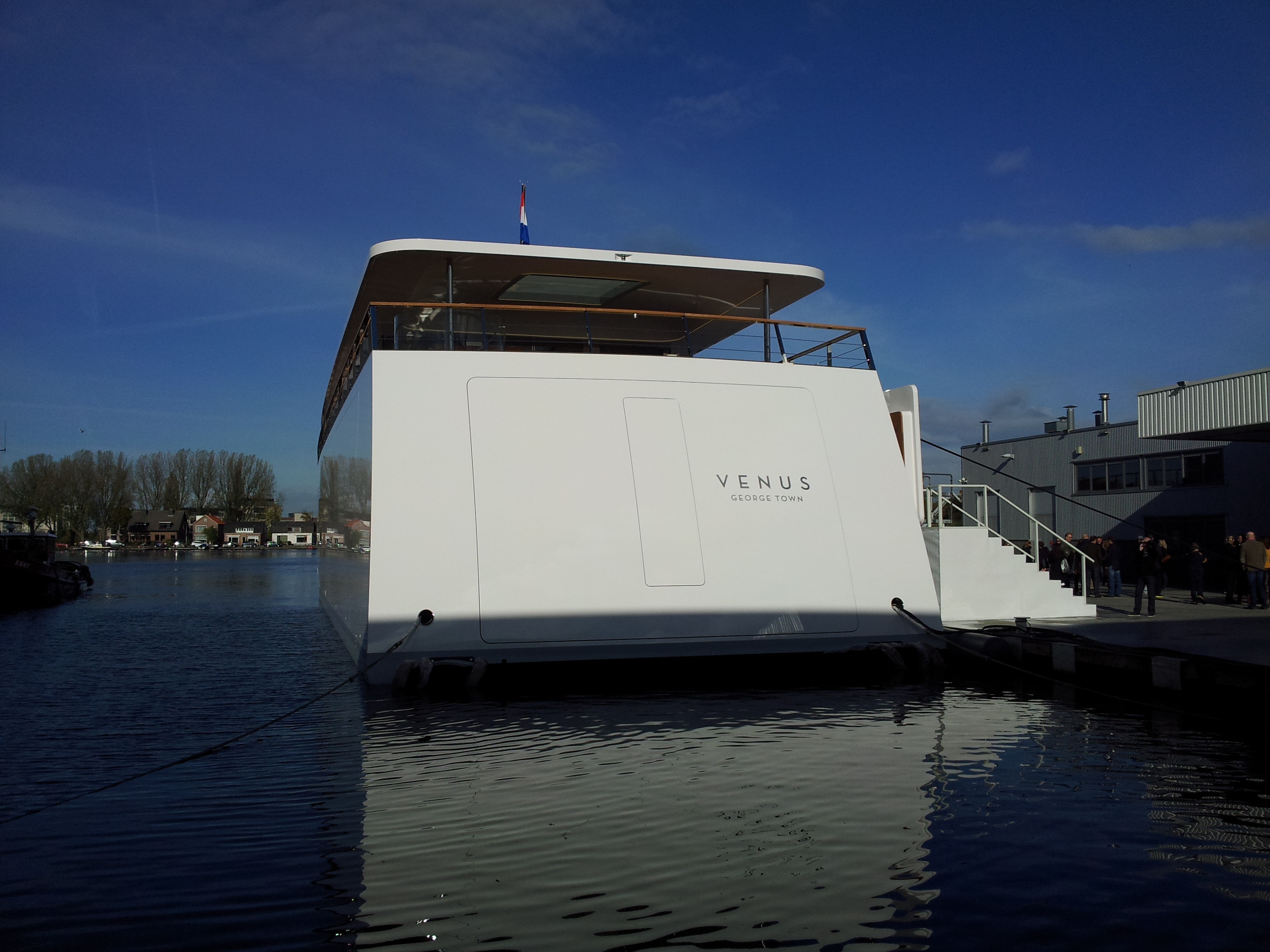 Today Steve Job’s yacht was launched from a dock a few miles from my house. I went there with some friends and we shot some awesome footage of this incredible ship. Through the glass, we could see the 7 iMacs which are used to control the ship. There are also large doors on the side and the back, I suspect these will be used to launch boats or jetskis into a nice warm Mediterranean water.