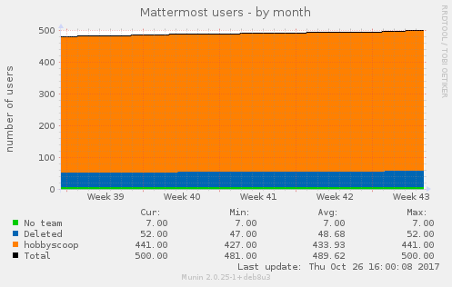 The server is paid for and run by people who care about sharing. Although Mattermost is not our focus area, we do try to contribute to Mattermost with bug reports, fixes and running the beta chat clients. Our usergroup is almost 500 people, and growing. Depending on events or contests roughly 20% of our users are actively reading and contributing to one or more channels: